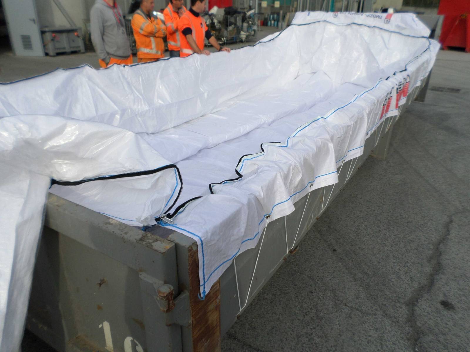 Le Bodybenne 10m3 -620 x240 x130cm - 15.66 kg, est conçu pour le conditionnement de volumes importants directement dans des bennes de chantier. Robuste et renforcé, il s’installe directement dans les bennes Ampliroll. Grâce à ses dimensions adaptées et à son film intérieur étanche, il permet le chargement sécurisé de plaques, gravats ou déchets amiantés friables, tout en facilitant la fermeture hermétique avant expédition vers le centre de traitement agréé.